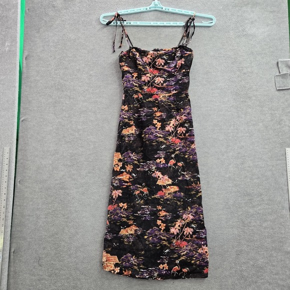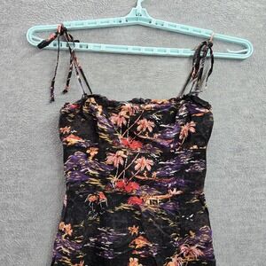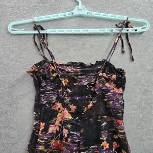 Free People Women Dress 2 Black Linen Blend Beach Party Floral Slip Sleeveless