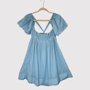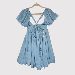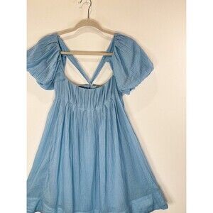 Free People Women Dress Blue Marina Mini Puffed Tie Back A Line Boho Chic Small