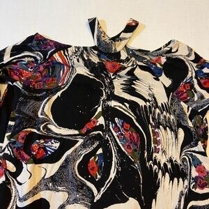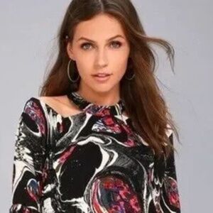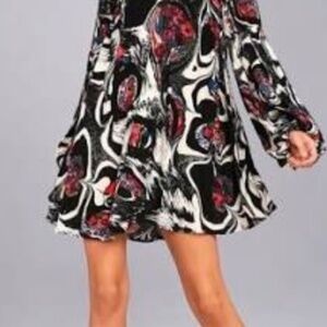 Free People Women Drift Away Tunic/Mini Dress Black Print Cold Shoulder Cocktail
