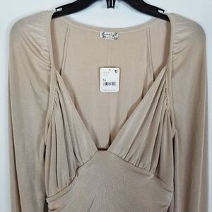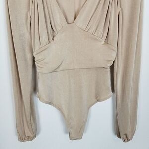Free People Women In Your Arms Bodysuit Blouse Size M Beige long Sleeve Top