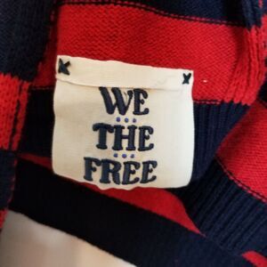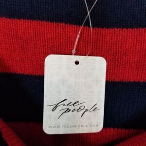 Free People Women Into the Blue Sweater Sz XL Red Blue Boxy Boho Wool Blend