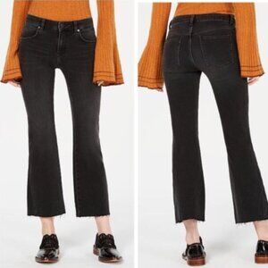 Free People Women Jeans 28" Black Rita Cropped Flare Raw Hem Pants Boho Grunge
