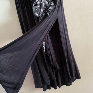 Free People Women M Navy Blue Boho Slits Tie Back Strapless Side Swept Tunic Top