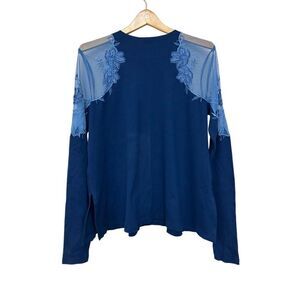 Free People Women M top blue Daniella embroidered long sleeves illusion shirt