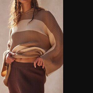 Free People Women Neutral Cobo Kami Striped Sweater Set Size S NWOT