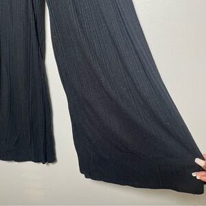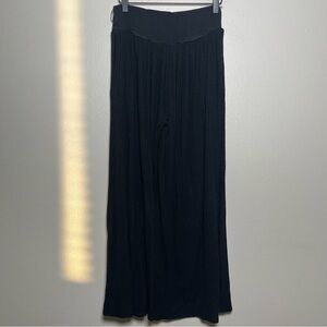 Free People Women Pants Small Black Wide Leg Ribbed Flare Boho Oversized Elastic Waist