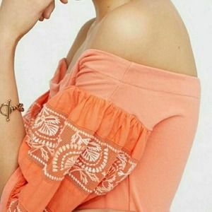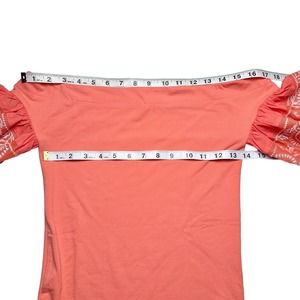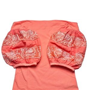 Pre-owned women’s Free People Rock With It coral puff sleeve embroidered off shoulder top.