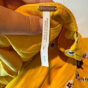 Free People Women S Lost In You Floral Midi Dress Golden Yellow V Neck Ruffle