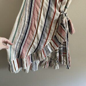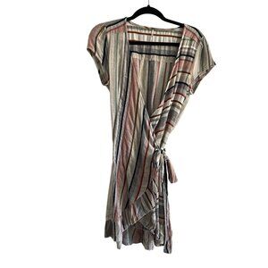 Free People Women S Striped Boho Short Sleeve Ruffle Wrap It Up Mini Dress.