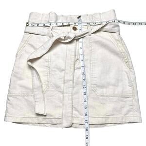 Pre-loved women’s Free People Splendor in the Grass cream mini skirt. Features paper bag waist, matching sash belt, and four pockets.