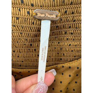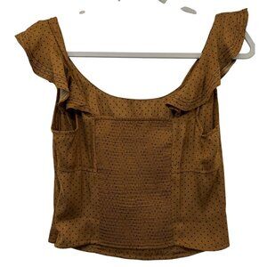 Free People Women Top Sz S Cropped Bronze Polka Dot Ruffled Satin Smocked Flirty