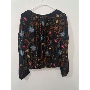 Free People Women Small Ruched Flutter Sleeve Mesh Floral Boho Top Brown Neutral