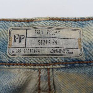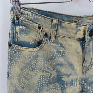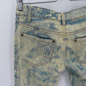 Free People Womens 24 Blue Bleached Dotted Swirl Flare Denim Jeans Pants Pockets