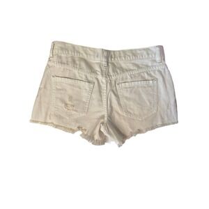Free People Women’s 26 Distressed Button Fly Cut Off Jean Shorts Cream