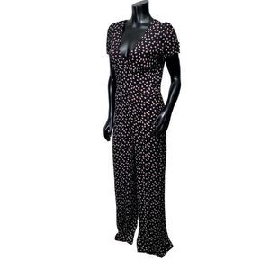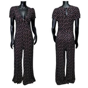 Free People Womens 8 Mia Black Peach Printed Wide Leg VNeck Jumpsuit One Piece