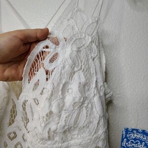 Free People Women's Adele white lace flowy tiered cami Sz XL Viscose Blend
