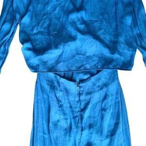 Free People Women’s Aida Collared Long Sleeve Silky Cobalt Blue Shirt Maxi Dress