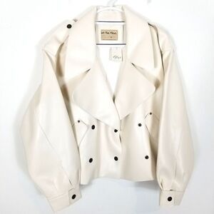 Free People Women's Alexis Vegan Jacket Sz M Ivory Snap Front Boxy Relaxed