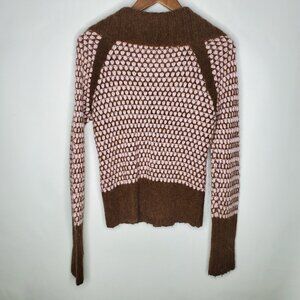 Free People Womens Alpaca Blend Pink Brown Geometric Button Up Cardigan Size M
