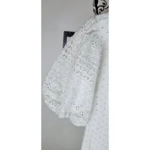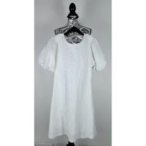 Free People Womens Apricot Rose Mini Dress Puff Sleeve Eyelet White Size XLarge