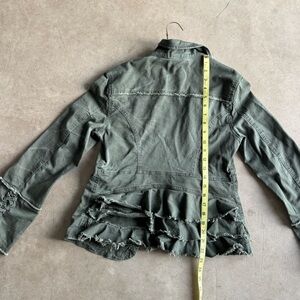 Free People Women's Army Green Jacket. Frayed. Gathered layers in back (S)