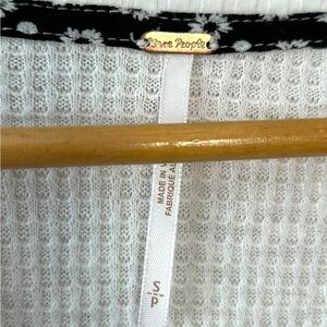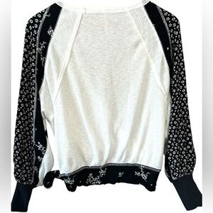 Free People Womens Auxton Thermal Waffle Black White Floral Boho Oversized Top S