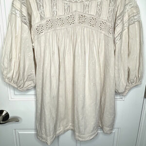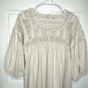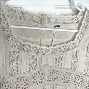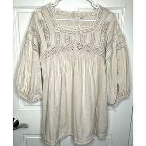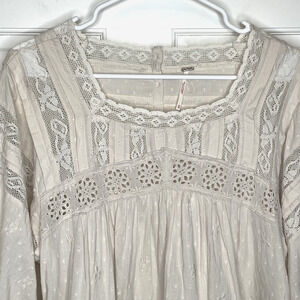 Free People Women's Azalea Lace Tunic Top Blouse Sz XS Oversized Boho Peasant