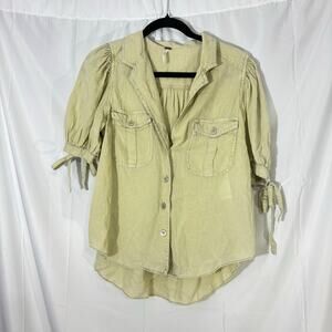 Free People Women’s Babe Safari Linen Button-Front Short Sleeve Shirt Top Size S