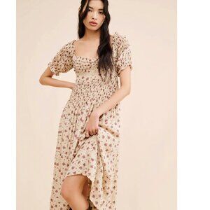 Free People Women's Bali Juniper Floral Print Ruffled Midi Dress Size 2