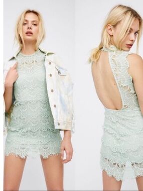 Free People Womens Beach Day Halter Mini Dress Blue Large