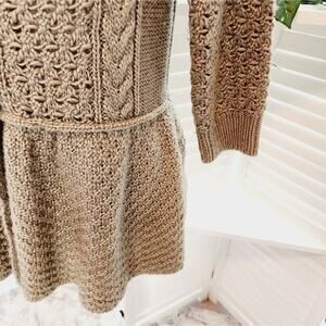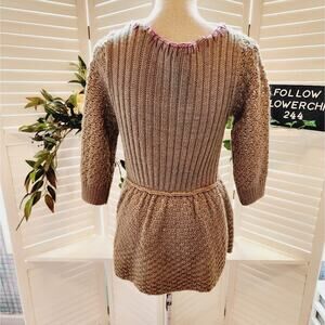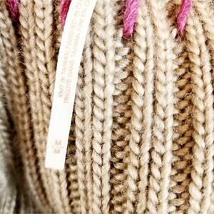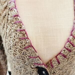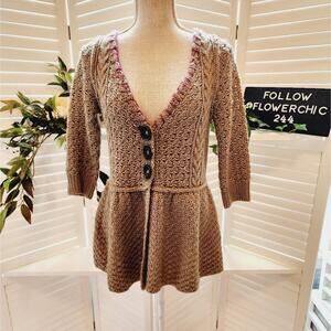 Free People Womens Beige Chunky Knit V Neck 3/4 Sleeve Cardigan Sweater Sz M