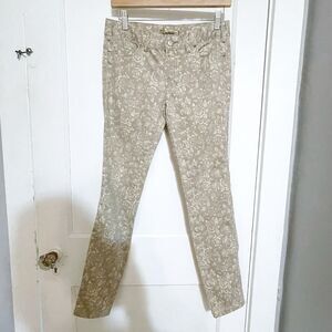 Free People Womens Beige Floral Skinny Jeans Size 27 Low Rise Boho