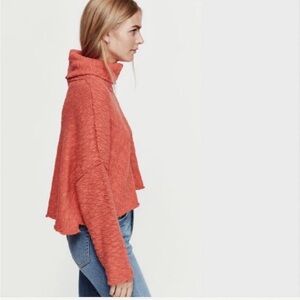 Free People Womens Big Easy Cowl Neck Pullover Sweater Red Sz L