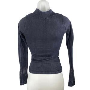 Free People Women's Black 1/4 Zip Long Sleeve High Neck Slim Sweater Top Size XS