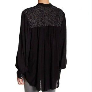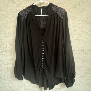Free People Womens Black Canyon Rose Hi-Lo Lace Mesh Button Top Sz M Boho
