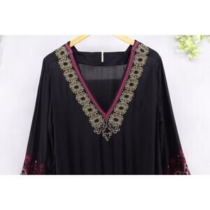Free People Women's Black Drop Waist Embroidered Mini Dress Bohemian Sz S