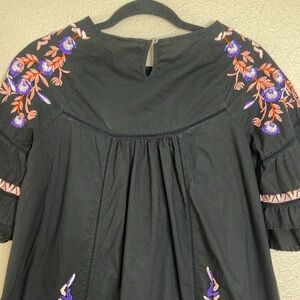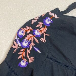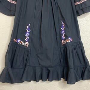 Free People Women’s Black Embroidered Boho Mini Dress – Size Sm Festive Goth