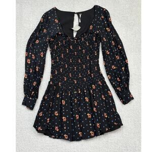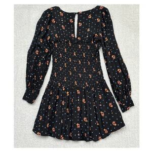 Free People Women's Black Floral Print Long Sleeve Dress Size XS #61396
