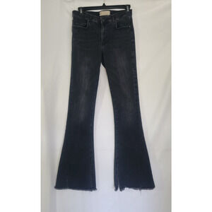 Free People Womens Black Frayed Hem Flare Denim Jeans US 28