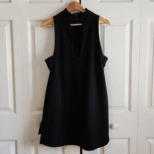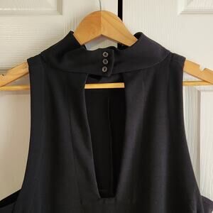 Elegant sleeveless black dress with a mock neck. Perfect for any occasion. 3 button closure. Side slits. EUC