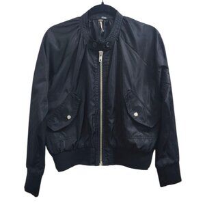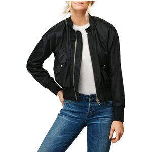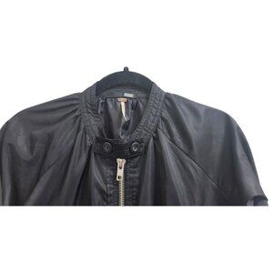 Free People Womens Black Ribbed Cuff Satin Full Zip Midnight Bomber Jacket S