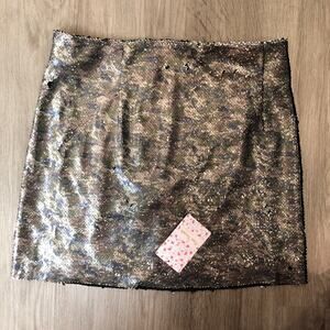 Free People Women's Black/Green Camo Reverse Sequin Stretch Mini Skirt sz 0