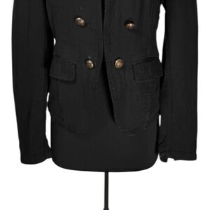 Free People Women's Blazer Black Double Breasted Gold Button Military Jacket M