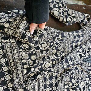 Free People Women's Blazer Jacket Flare Cardigan Black and White Floral size S