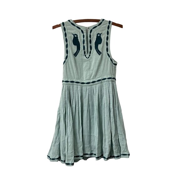 Free People Womens Blue Birds of a Feather Fit Flare Mini Dress Size 0