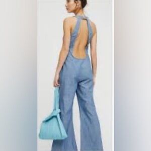Free People Women's Blue Dance All Night Open Back Jumpsuit size 12