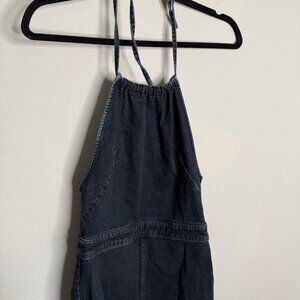 Free People Women's Blue Hearts On Fire Halter Denim Jumpsuit - Size 2