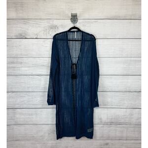 Free People Women's Blue Lattice Open Knit Tie Front Boho Cardigan Size Medium