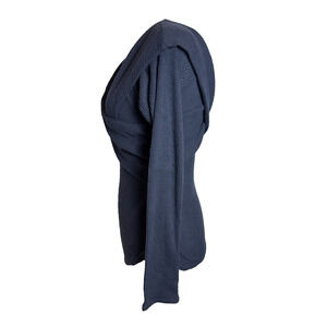 Free People Women's Blue Marley Off Shoulder Long-Sleeve Rib Twist Top Small