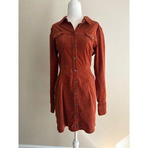 Free People Womens Boho Retro Corduroy Mini Dress Burnt Orange Size Small